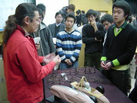 午前中は,車輌パッケージ,空力,エンジンについての講義があり,午後からは,ボデー,意匠(デザイン),シャシーについての講義がありました.最後にはフリーの質問時間を用意していただきました.そこでは普段自分達が疑問に思っていることなど,いろいろな質問に答えていただき,非常に参考になりました.